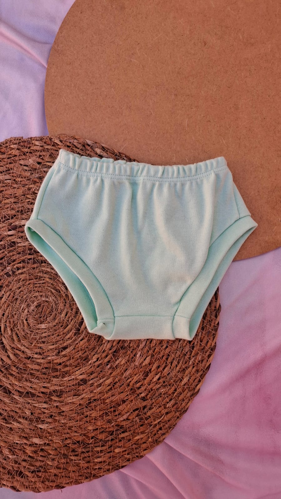 Tapa fraldas confeccionado em malha suedine 100% algodão, macia e flexível. Absorve o suor e permite que a pele do bebê respire, mantendo-o confortável.