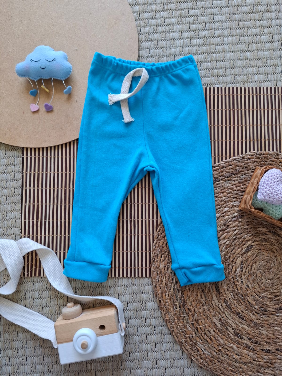 Calça confeccionada em malha Suedine 100% algodão, macia e flexível. Absorve o suor e permite que a pele do bebê respire, mantendo-o confortável.