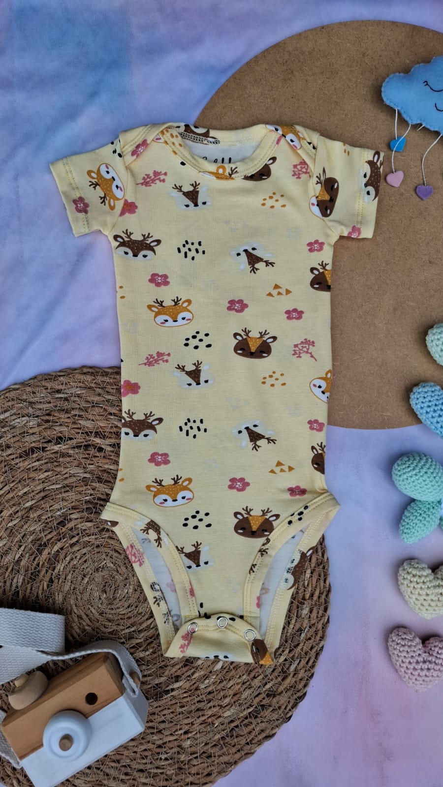 Body manga curta confeccionado em Cotton 96% algodão, 4% elastano, macio e flexível. Absorve o suor e permite que a pele do bebê respire, mantendo-o confortável.