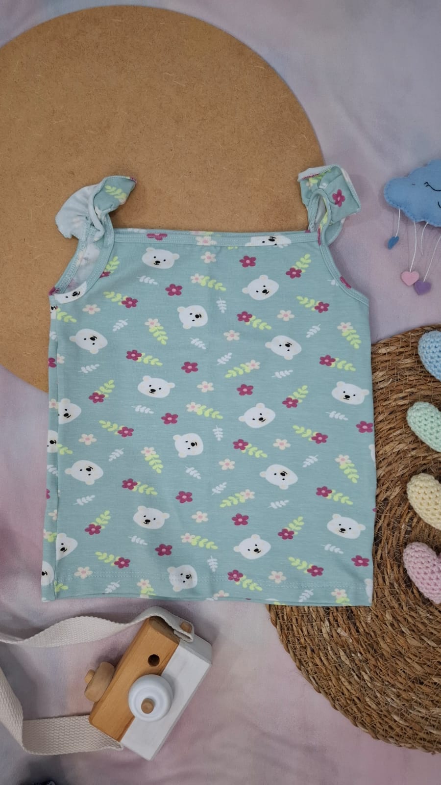 Camiseta alcinha confeccionado em Cotton 96% algodão, 4% elastano, macio e flexível. Absorve o suor e permite que a pele do bebê respire, mantendo-o confortável.