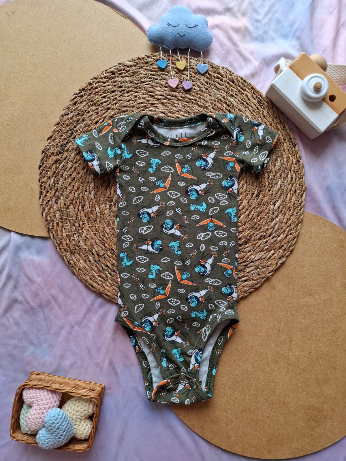 Body Manga Curta Masculino Dinossauro Aviador