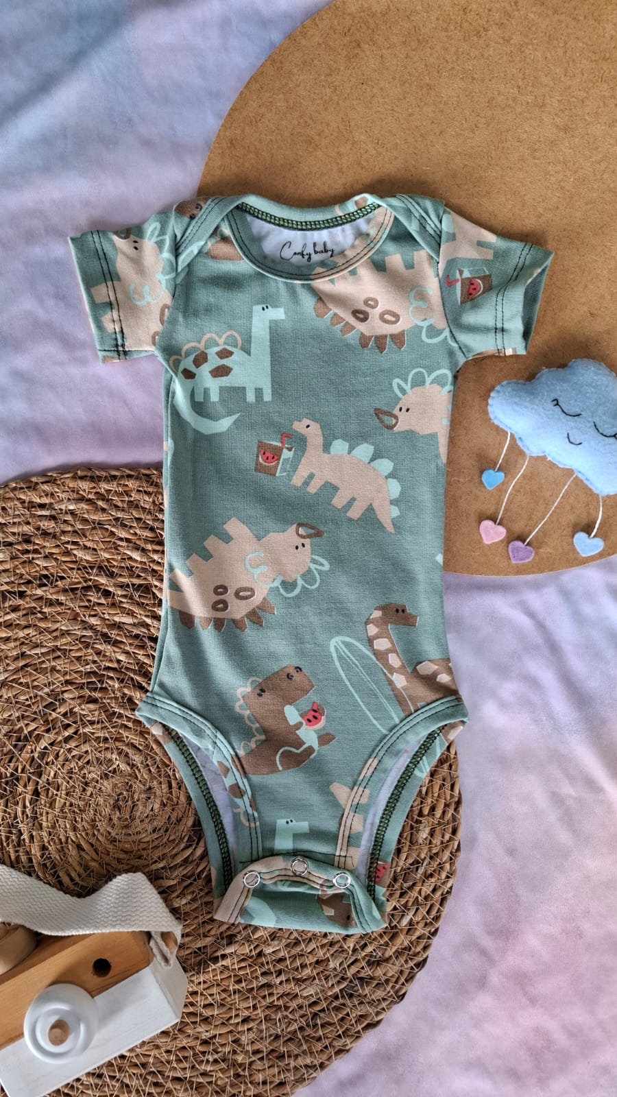 Body Manga Curta Dinossauros Musgo