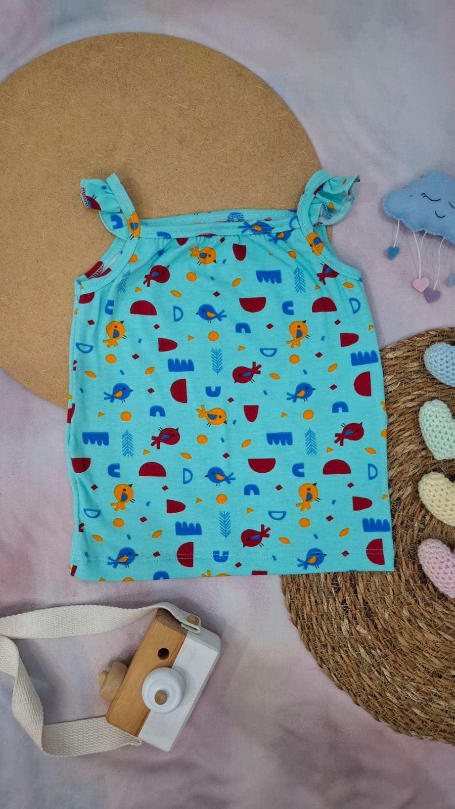 Camiseta alcinha confeccionado em Cotton 96% algodão, 4% elastano, macio e flexível. Absorve o suor e permite que a pele do bebê respire, mantendo-o confortável.